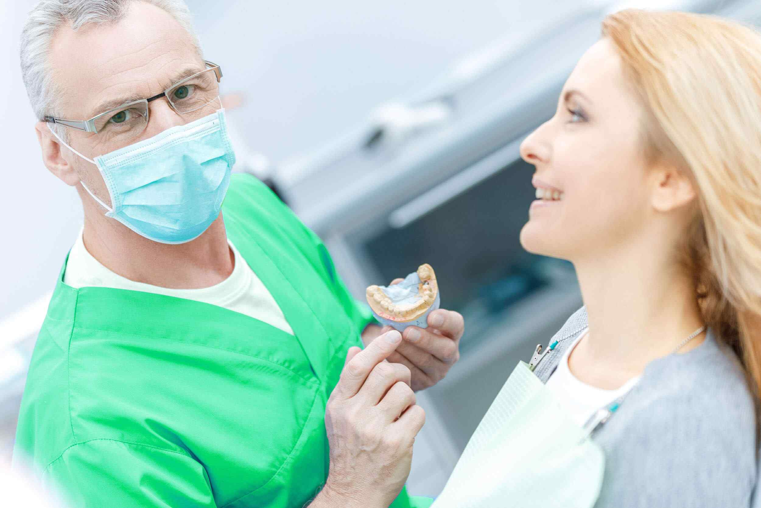 A dental bridge replaces one or more missing or broken teeth with fake teeth. Bridges use one or more real teeth on either side of the gap to hold the fake teeth in place.
